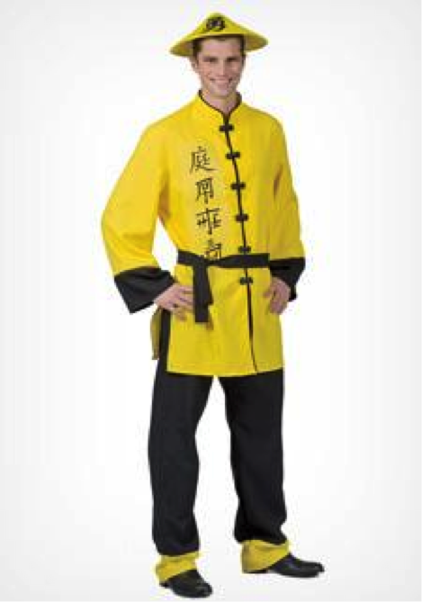 Much like the other costumes, it spreads false ideologies and stereotypes of the culture it stems from, in this case, Asian culture. Let’s start with the characters on the jacket. The first one has been identified as meaning ‘garden’, and the rest? Just some made-up squiggles the makers tried to pass off as ‘authentic’. And contrary to popular belief, this is not how most Asians dress! T-shirts and jeans are common in modernized areas of Asia, and as for the traditional areas, this is a gross representation of what they wear. But hey, let’s just group all Asians into this one costume! Stereotyping, again.